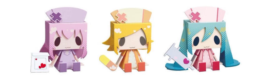 | mikus: love ward, m@gical cure love shot, LOL, magical mirai 2013, marukunaru, nyanko and any nurse/cat/halloween themed mikus. others: kagamine len, megurine luka, pinkie pie, clawdeen & draculaura, charmmy kitty, my melody+ more! |